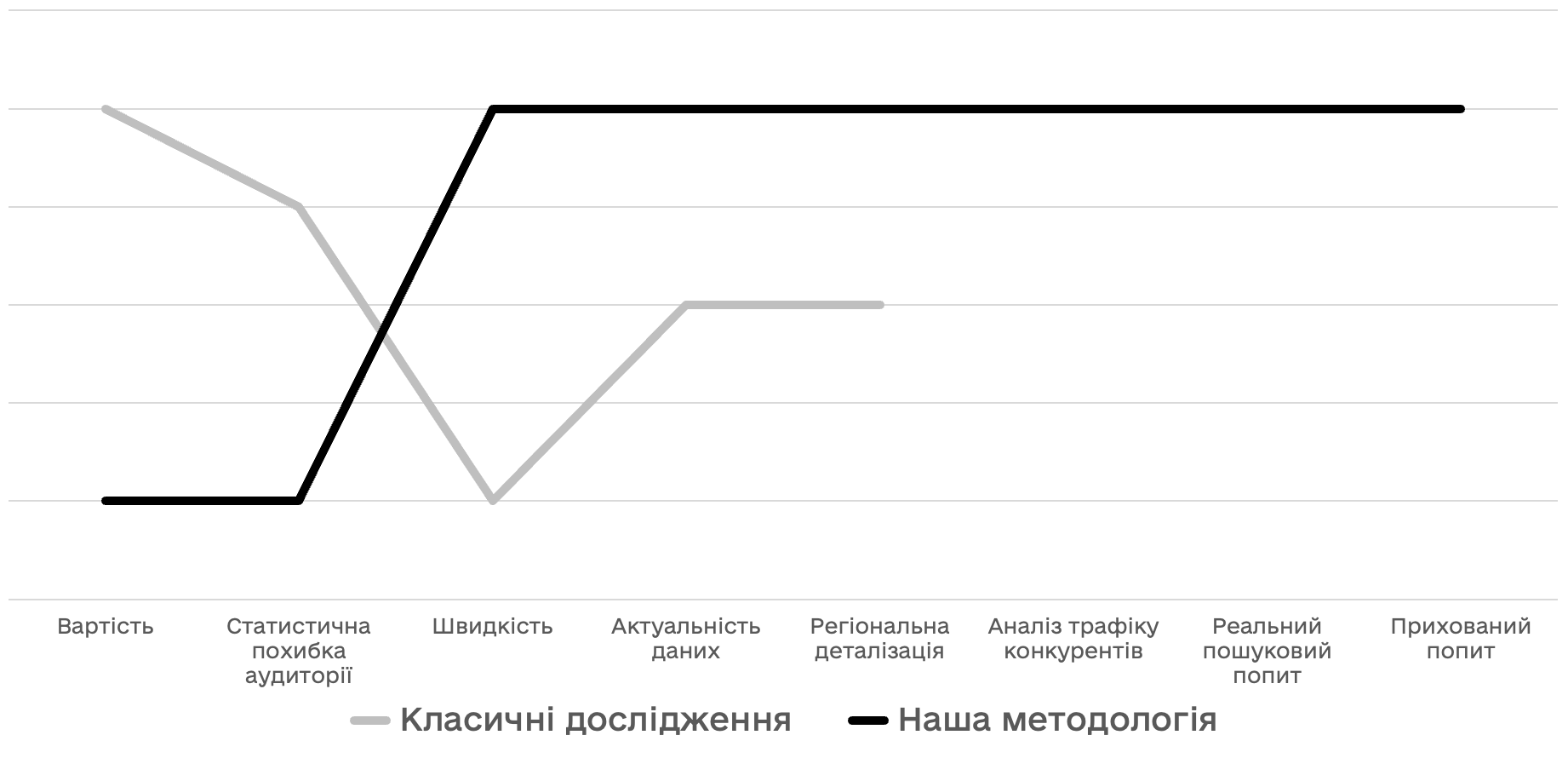Вартість аналітики формується індивідуально під задачі та є суттєво нижчою за класичні дослідницькі формати.